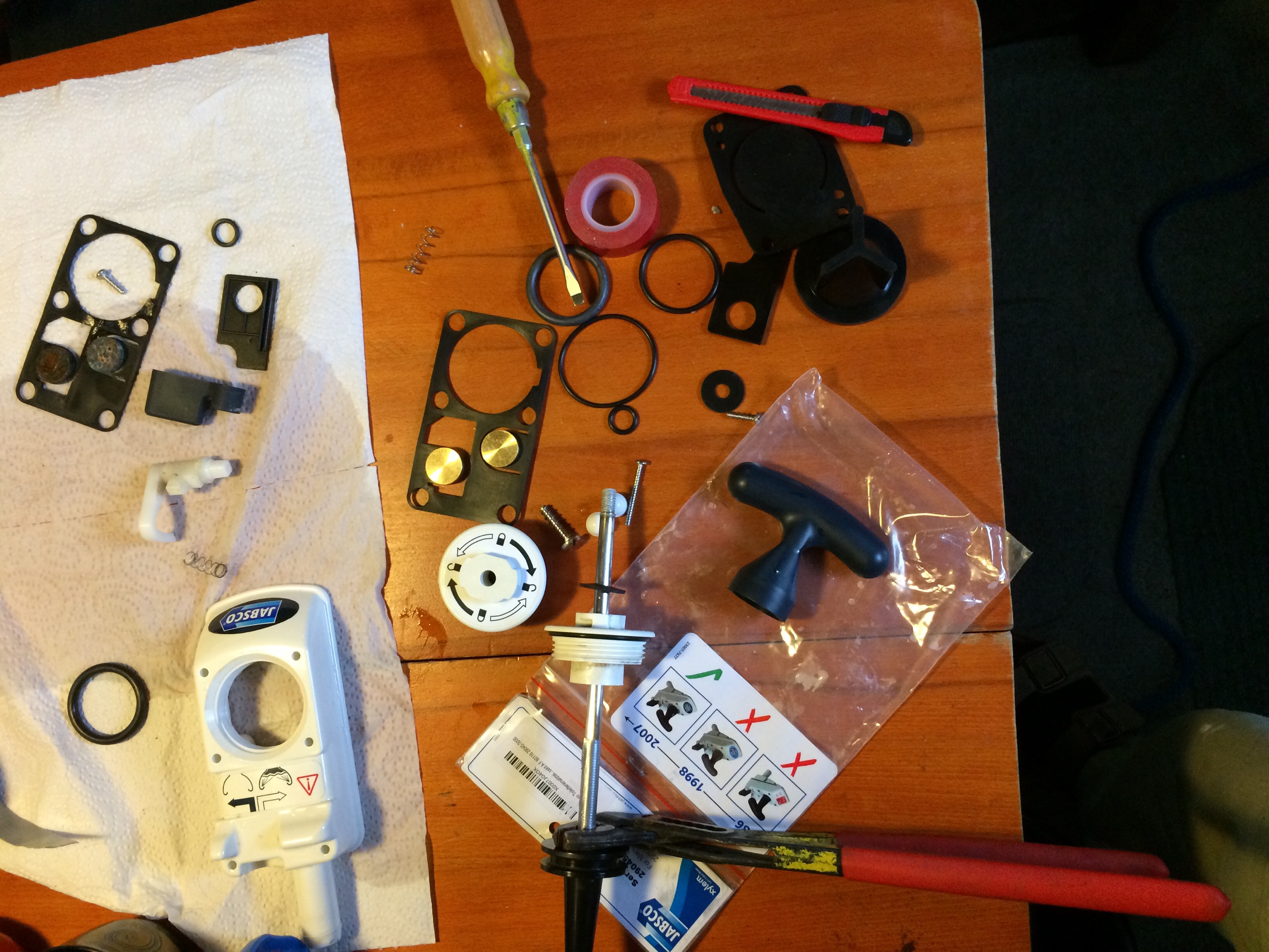 Wartungsarbeiten – hier der neue Dichtungssatz der See-Toilette: