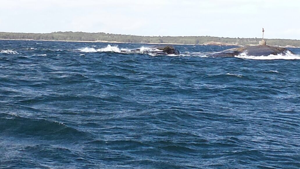 Zusammen mit Reinhard geht’s zurück in die Schären. Nach Dalarö fährt man durch den schmalen Skurusund. An der engsten Stelle bei Lännersta lassen wir den Gegenverkehr lieber erst durch, bevor wir die circa 10 m breite Fahrrinne passieren!